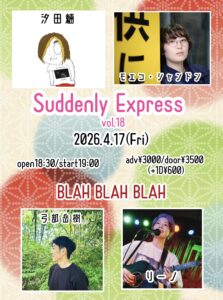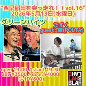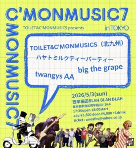 【出演】トミー(the HANGOVERS)/岡田哲/秋山カラスウリ/つかちゃん(シャニムニ)open18:00/start18:30adv¥3000/door¥3500(+1D¥600)