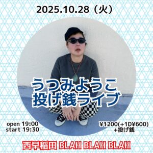 2025年10月28日(火)“うつみようこ 投げ銭ライブ”
